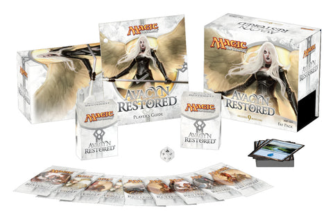 • Player's guide with complete visual encyclopedia • Avacyn Restored card box • 9 Avacyn Restored booster packs • 80-card basic land pack • Special edition Spindown life counter • 2 Deck boxes