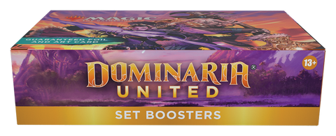 The Dominaria United Set Booster Box contains 30 Dominaria United Set Boosters and 1 Traditional Foil Box Topper card.
