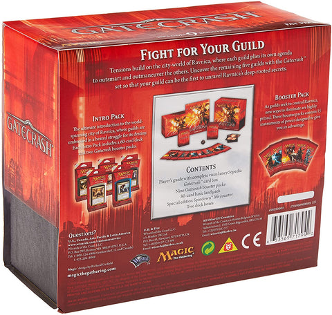 • Player's guide with complete visual encyclopedia • Gatecrash card box • 9 Gatecrash booster packs • 80-card basic land pack • Special edition Spindown life counter • 2 deck boxes