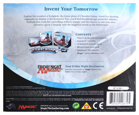 • 1 Player's Guide with encyclopedia • 1 Card Box • 10 Kaladesh Booster Packs • 80 Basic Land Cards • 1 Spindown Life Counter • 1 Quick reference card