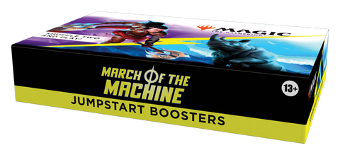 The March of the Machine Jumpstart Booster Box contains 18 March of the Machine Jumpstart Boosters. Each booster has a theme. Just grab two packs and shuffle them together for wild combos and a unique gameplay experience that's great for a quick game, for long-time fans looking to jump back in, or for a fun, approachable way to learn the game.