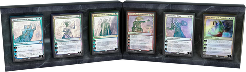 Comic-Con 2017 again featured the five most recent planeswalker cards from the members of the Gatewatch (without Ajani), all of them in the Ancient Egypt profile style. In addition there was the most recent Nicol Bolas card, depicting him while putting his spell on the Gatewatch. The Egyptian theme and the counteracted depictions connected to the story of the recent Amonkhet block.