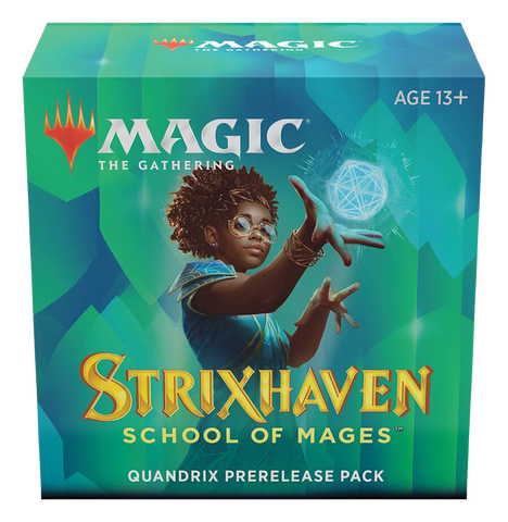 • 5 Strixhaven: School of Mages Draft Boosters • 1 Strixhaven: School of Mages College Booster (The Rare/Mythic slot is from the Quandrix College) • 1 foil promo-stamped Rare/Mythic card from Strixhaven: School of Mages • 1 Spindown life counter