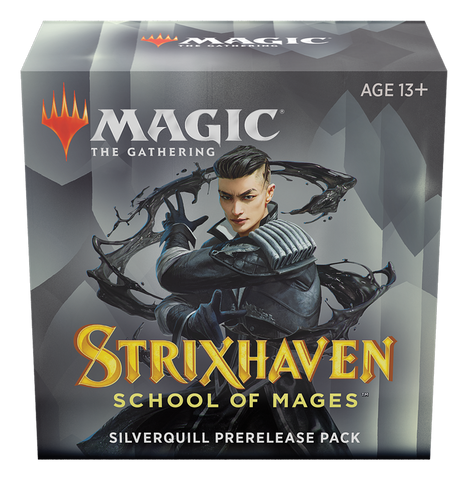 • 5 Strixhaven: School of Mages Draft Boosters • 1 Strixhaven: School of Mages College Booster (The Rare/Mythic slot is from the Silverquill College) • 1 foil promo-stamped Rare/Mythic card from Strixhaven: School of Mages • 1 Spindown life counter